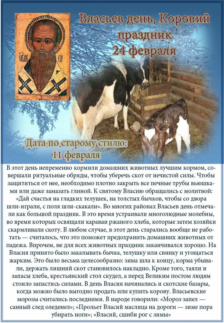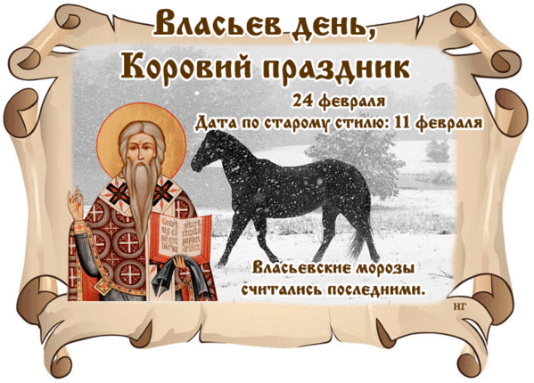 24 февраля 2024 года - Власьев день, Коровий праздник. Здесь вы найдете красивые картинки, прикольные открытки, анимированные гифки и мерцающие картинки, посвященные Власьеву дню и Коровьему празднику. Воспользуйтесь возможностью бесплатно скачать и отправить своим любимым, родным, друзьям или близким поздравительную картинку или открытку с пожеланиями на этот особенный день.