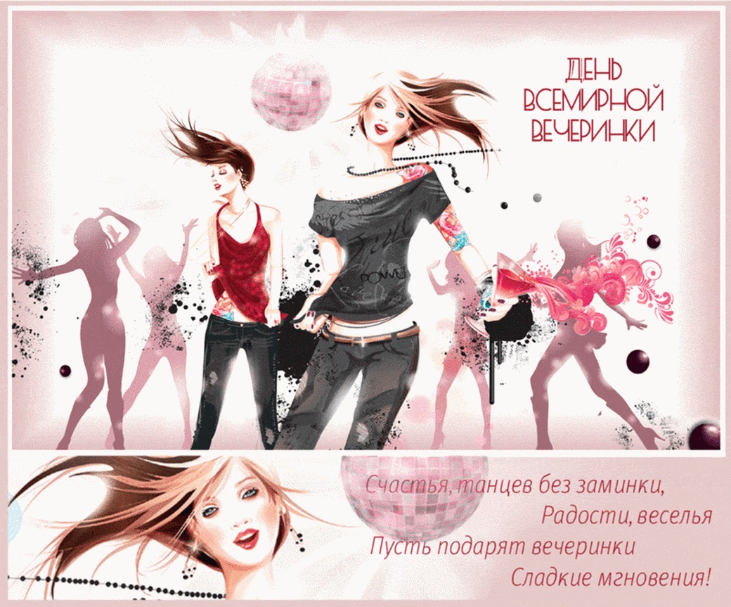 3 апреля 2024 года - Всемирный день вечеринки. Красивые картинки, прикольные открытки, анимированные гифки и мерцающие картинки со Всемирным днем вечеринки. Скачайте бесплатно и отправьте своим любимым, родным, друзьям или близким поздравительную картинку или открытку с пожеланиями на этот особенный день.
