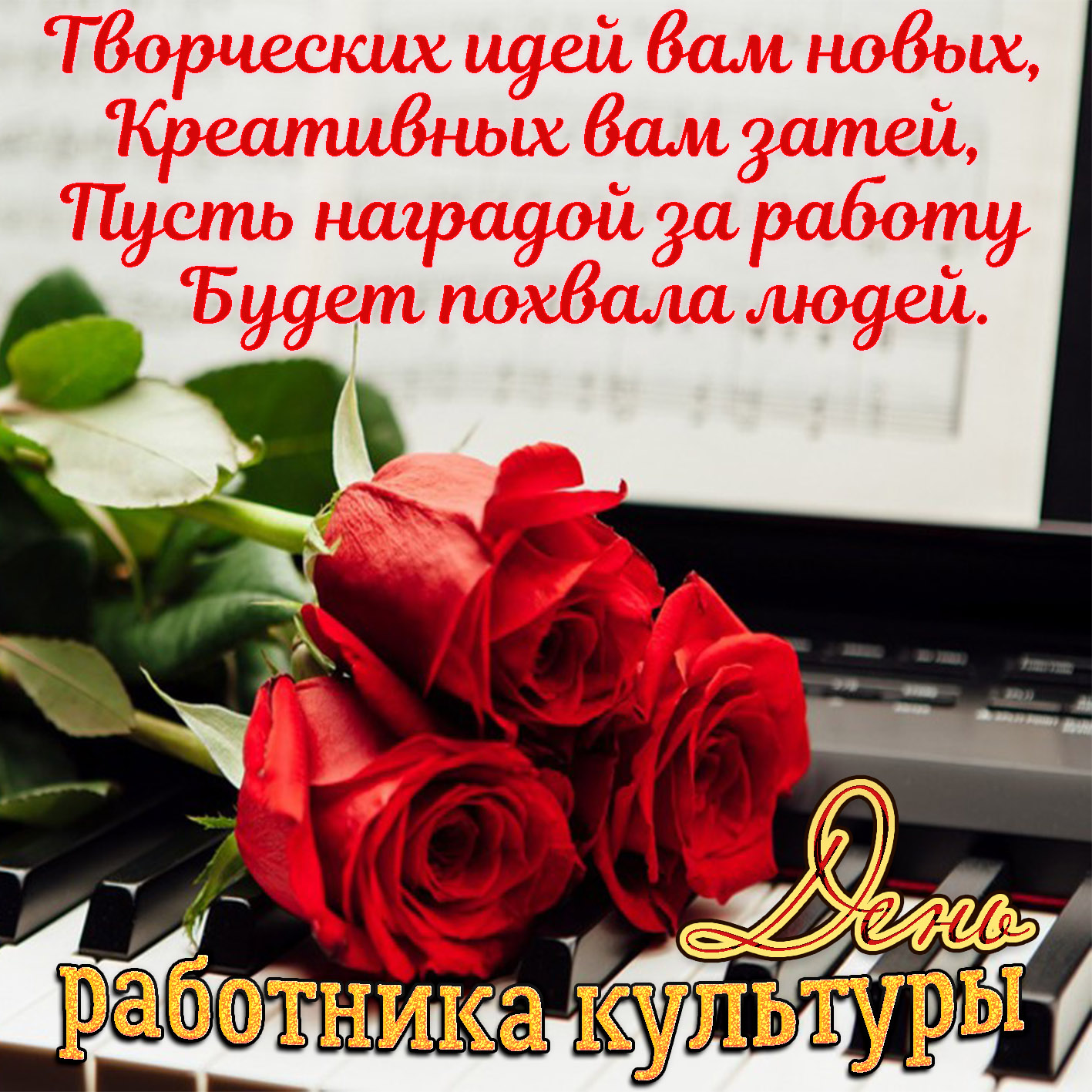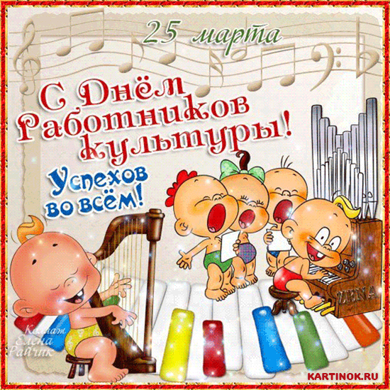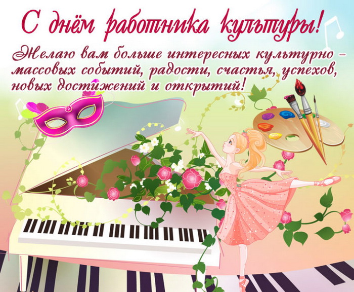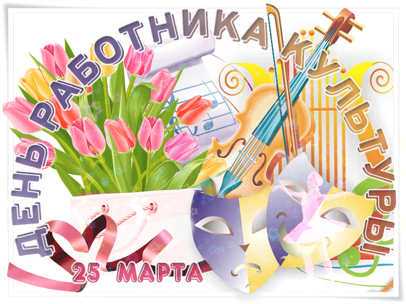 25 марта 2024 года - День работника культуры. Красивые картинки, прикольные открытки, анимированные гифки и мерцающие картинки с Днём работника культуры. Скачайте бесплатно и отправьте своим любимым, родным, друзьям или близким поздравительную картинку или открытку с пожеланиями на этот особенный день.