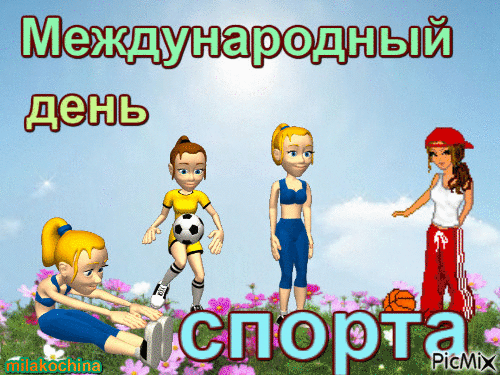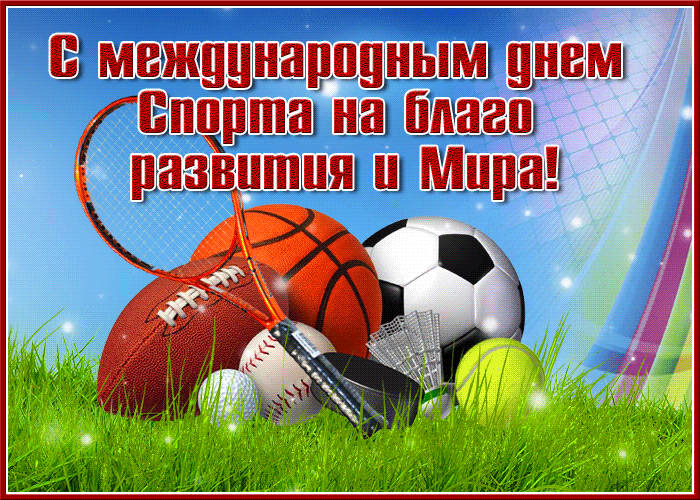 6 апреля - Международный день спорта на благо развития и мира. Красивые картинки, прикольные открытки, анимированные гифки и мерцающие картинки с Международным днем спорта. Скачайте бесплатно и отправьте своим любимым, родным, друзьям или близким поздравительную картинку или открытку с пожеланиями на этот особенный день.